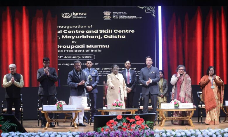 ରାଷ୍ଟ୍ରପତି ଦ୍ରୌପଦୀ ମୁର୍ମୁ ଆଜି ରାଷ୍ଟ୍ରପତି ଭବନ ସାଂସ୍କୃତିକ କେନ୍ଦ୍ରଠାରେ ଆୟୋଜିତ ଏକ କାର୍ଯ୍ୟକ୍ରମରେ ସ୍କିଲ୍ ଦ ନେସନ୍ ଚ୍ୟାଲେଞ୍ଜର ଶୁଭାରମ୍ଭ କରିଛନ୍ତି। ଏହି ଅବସରରେ ସେ ଓଡ଼ିଶାର ରାଇରଙ୍ଗପୁରରେ ଇଗ୍ନୋ ଆଞ୍ଚଳିକ କେନ୍ଦ୍ର ଏବଂ ଦକ୍ଷତା କେନ୍ଦ୍ରକୁ ଆଭାସୀ ମାଧ୍ୟମରେ ମଧ୍ୟ ଉଦଘାଟନ କରିଥିଲେ।